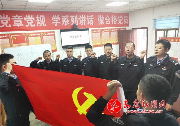 活動中,支部書記為全體黨員講了生動的一堂黨課,集體重溫了入黨誓詞,一起觀看了警示教育片《警鐘》。全體黨員干部面對鮮紅的黨旗莊嚴(yán)宣誓,重溫入黨誓詞,接受理想信念教育,心靈得到了又一次凈化。最后通過相互交流學(xué)習(xí)心得、討論各自思想感受,紛紛表示,要珍惜先輩們負(fù)重前行換來的和諧社會,努力用自己的實際行動扎實做好本職工作,以高度的政治責(zé)任感,積極為示范區(qū)人民群眾創(chuàng)造安全、暢通、有序的道路交通環(huán)境。