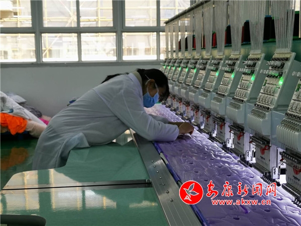 本網訊(通訊員 黃云慧)“我就住在這個社區(qū),在這里上班每月能拿2000多,我很滿足了”,五里鎮(zhèn)泰炫電腦繡花公司女工李榮雪一邊說著一邊手上不停地清點著貨物數(shù)量。李榮雪是五里鎮(zhèn)朝陽社區(qū)二組村民,今年50歲了,兩個孩子都在上學,經鄰居介紹到工廠里務工,實現(xiàn)掙錢和持家兩不誤。