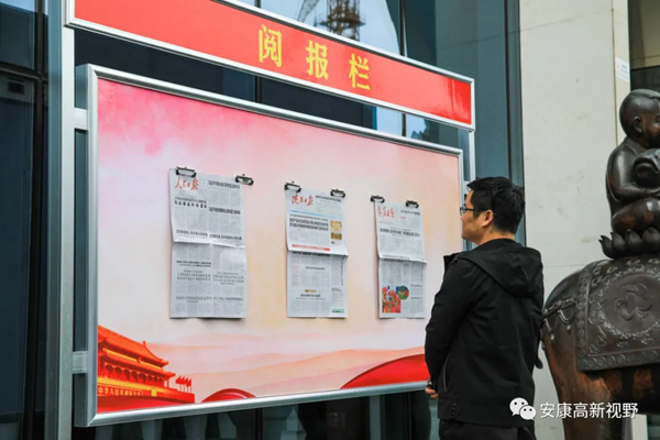日前,在安康高新區(qū)的市民廣場、政務中心、公園綠地、大眾餐廳、居民社區(qū)等人口密集區(qū)域,承擔著“黨報指引方向,閱讀增添力量”宣傳教育功能的一個個“閱報欄”,讓廣大市民在享受物質(zhì)生活的同時更具精神追求,成為創(chuàng)建全國文明城市中一道道亮麗的風景。