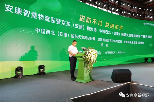 徐信選副主任在致辭中表示,安康智慧物流園暨京東(安康)物流港與中國西北(安康)國際天貿(mào)城簽訂戰(zhàn)略合作協(xié)議,標(biāo)志著雙方正式開啟統(tǒng)倉統(tǒng)配、多式聯(lián)運(yùn)發(fā)展新篇章,也意味著安康智慧物流園暨京東(安康)物流港建設(shè)項(xiàng)目有了更強(qiáng)、更優(yōu)秀的合作伙伴。希望雙方精誠合作、攜手共進(jìn),共同推動(dòng)合作項(xiàng)目盡快投工生產(chǎn),早日產(chǎn)生效益,為安康高新區(qū)區(qū)域物流產(chǎn)業(yè)發(fā)展和經(jīng)濟(jì)高質(zhì)量發(fā)展做出更大貢獻(xiàn)。