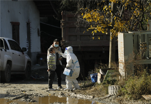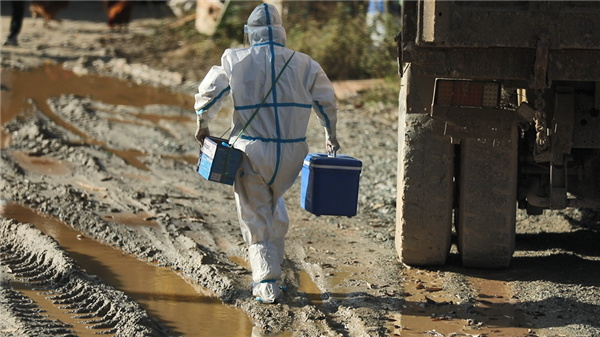 11月25日中午,忙完第一輪核酸采集,再接到流調通知單后,王康又立馬帶著他的“小伙伴”前往三里社區(qū)為居家隔離人員做核酸檢測,溝深路滑,因前幾日陰雨天氣路面濕滑,在上一處陡坡時,車輪瞬間開始側滑,但是時間緊迫只能一試再試,大概試了20余次,在村上壓路車的幫助下,又試了兩次車子終于緩緩啟動。喜悅之余他們就即刻趕往隔離群眾家中,“我們快一點,再快一點,就能讓等待的人少受一點冷”,這是“大白”們共同的心愿。