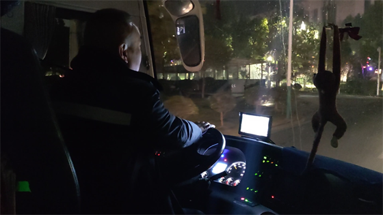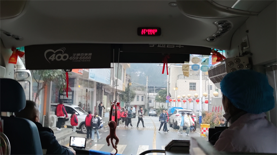 環(huán)顧車內(nèi),面包、牛奶、熱水……這里更像是他們的第二個家。我和司機師傅開玩笑說:“今天出發(fā)夠早的啊,太陽都還沒上班呢。”司機輕描淡寫的說:“這算晚的了,以前去更遠的鎮(zhèn)上,四五點就要出發(fā)?!彼p眼筆直的看向前方,仿佛看見了比路更多的東西,而在我眼里,那不過是車燈照不到盡頭的一片迷霧。