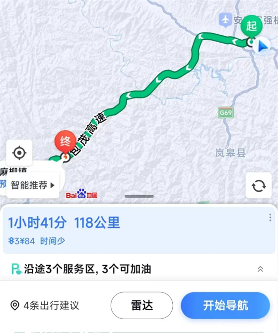 此行的目的地是紫陽縣麻柳鎮(zhèn),需駐扎一天,在當?shù)亟M織一場獻血活動。此刻導(dǎo)航上它距血站118公里。