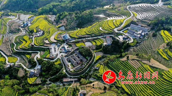 三三兩兩的房屋,就掩映在層疊的菜花梯田間,潔白的墻面,黛青的屋瓦,金燦的菜花,有種遺世獨立的靜美,塵世的喧囂一下子就遠了。尋一條鄉(xiāng)野小徑,步入茫?;ㄌ镩g,不時有蜂蝶流連,孩童嬉鬧,農(nóng)人牽著牛自不遠的長橋上悠悠走過,處處都流淌著鄉(xiāng)村田園的盎然春意。
