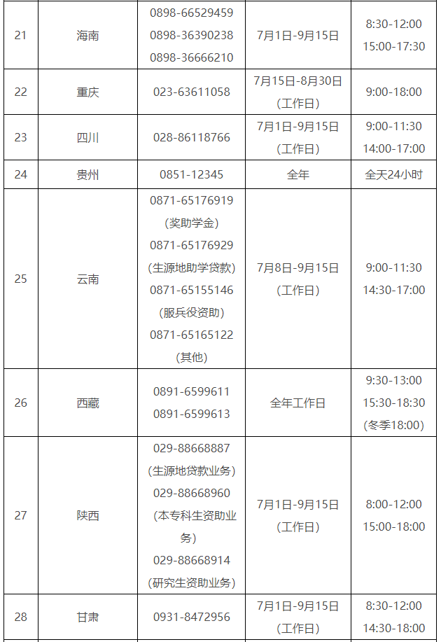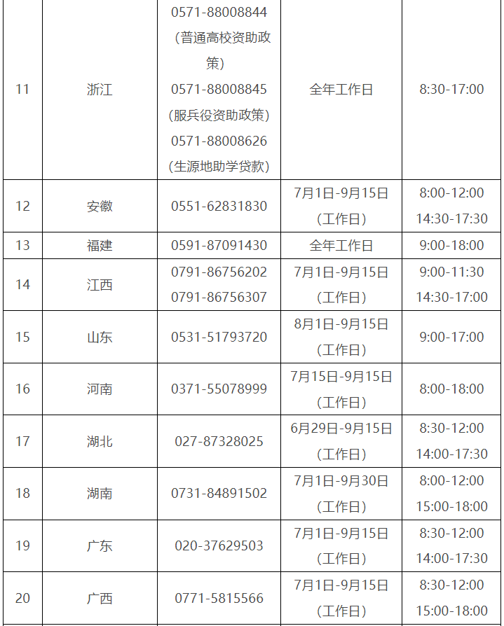 各?。ㄗ灾螀^(qū)、直轄市)和中央部門所屬高校同步開通了熱線電話,電話號碼與開通時間可查看匯總表。