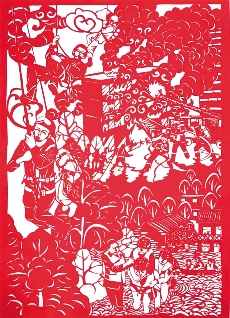 2022年,張莉的剪紙作品在“我與火焰藍(lán)”安康消防授旗訓(xùn)詞三周年風(fēng)采繪畫大賽中,榮獲“成人組優(yōu)秀作品獎”,并被主辦方收藏。2023年張莉帶隊(duì)參加“德潤安康”安康市首屆校園科技藝術(shù)節(jié),在剪紙區(qū),小隊(duì)員們發(fā)揮巧思妙想,精心設(shè)計、細(xì)心折剪,只見刀尖一開一合,紅紙不斷翻轉(zhuǎn),一幅幅栩栩如生、惟妙惟肖的作品就讓觀眾親眼見證了“刀光剪影”的神奇。隊(duì)員們嫻熟的技藝,精美的作品迅速吸引了許多人駐足參觀。