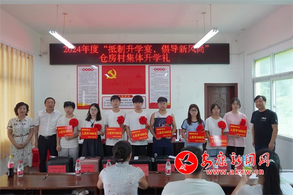 自2017年白河縣首場集體升學禮在倉房村順利舉辦以來,倉房堅持村連續(xù)七年為準大學生們舉辦集體升學禮儀式。8月9日,倉房村攜手市中醫(yī)醫(yī)院和縣殘聯(lián)在全鎮(zhèn)率先開展集體升學禮儀式,在儀式上市中醫(yī)醫(yī)院和縣殘聯(lián)分別為準大學生們送上助學金和行李箱,并勉勵他們求學路上要堅定理想,培養(yǎng)良好的人生觀、價值觀,勤奮學習練就過硬本領,回報家鄉(xiāng)。