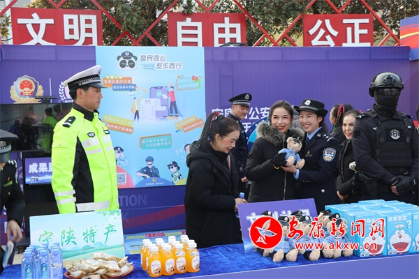 12月23日,全市公安機(jī)關(guān)平安建設(shè)宣傳周正式啟動(dòng),在安康金州廣場(chǎng),寧陜縣公安局搭建起了獨(dú)具特色的“宣傳集市”。本次宣傳集市設(shè)置了防范反詐知識(shí)有獎(jiǎng)問答、小小警服特色打卡、“反詐圈套”“反詐轉(zhuǎn)盤”趣味游戲、新型警用裝備展示等環(huán)節(jié),現(xiàn)場(chǎng)將貼有反詐標(biāo)簽的寧陜特產(chǎn)、精美的文創(chuàng)物品發(fā)放給參與活動(dòng)的群眾。整個(gè)“集市”熱鬧非凡,各種趣味互動(dòng)環(huán)節(jié)吸引群眾紛紛駐足,自發(fā)排起長(zhǎng)隊(duì)參與到反詐答題抽獎(jiǎng)小游戲中。