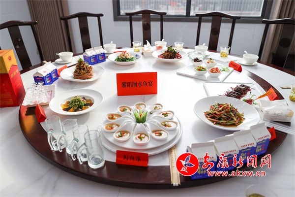 “紫陽洄水魚宴”由8個涼菜,即:香酥小魚、干煸牛肉、茶香魚皮、鱘魚凍、撈汁七彩花生、酸辣四拼、雙色變蛋、涼拌折耳根;8個熱菜即:茶香鱘魚、紫蘇魚片、熗鍋鯉魚、釀羊肚菌、辣子雞、臘味三拼、魚頭燉黑豆腐、當歸白蘿卜燉羊肉;一個湯菜:魚丸湯;3道小吃即:魚肉餃子、茶香餅、紫菜魚餅;主食:金銀米飯、酸菜面和飯后水果拼盤組成。據(jù)了解該宴席是繼漢濱區(qū)流水魚宴、石泉縣江魚魚宴之后,全市公開推向市場的第三個以魚為主料的專業(yè)魚宴。?