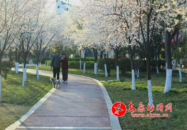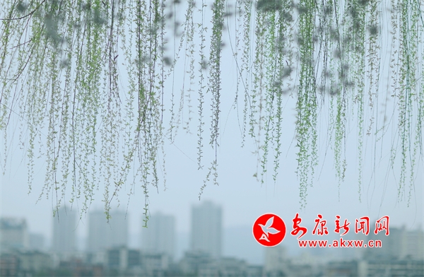 花朵盛開,柳樹垂絲,遠(yuǎn)處的城市建筑若隱若現(xiàn)。人們?cè)诮吢健⑿蓓?,享受著春日里的美好時(shí)光。此時(shí)的畫面將現(xiàn)代文明與自然生態(tài)完美融合,讓人感受到城市中一抹特有的清新與寧?kù)o。