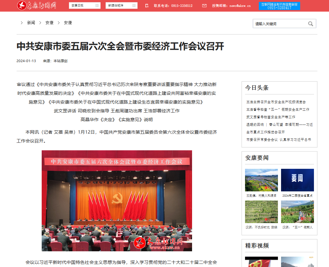《中共安康市委五屆六次全會暨市委經濟工作會議召開》(2024-01-13發(fā)布)