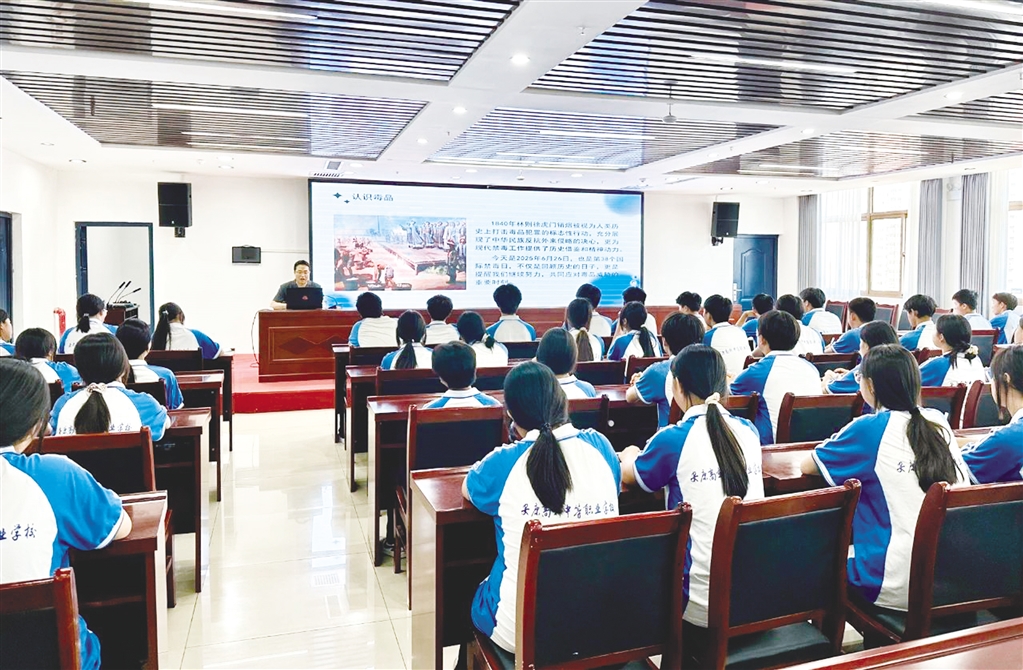 在禁毒宣講環(huán)節(jié),法官通過圖文并茂的方式展示了常見毒品的種類、特性和危害,指導(dǎo)學(xué)生提高辨別能力,增強自我保護意識,并告誡學(xué)生們要時刻保持警惕,堅決抵制毒品侵害。