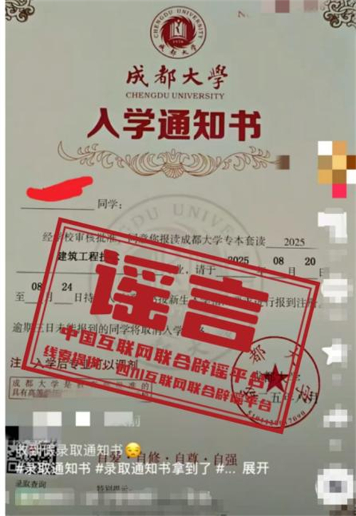教育部多次提醒,部分機(jī)構(gòu)和個(gè)人打著普通高等學(xué)歷教育幌子,實(shí)際卻為自考助學(xué)、網(wǎng)絡(luò)教育等其他教育形式,或進(jìn)行虛假宣傳。如未通過高考招生錄取獲得正式通知書,無法注冊(cè)普通高校正式學(xué)籍,也無法取得普通高等學(xué)校學(xué)歷證書??忌凹议L應(yīng)通過正規(guī)渠道核驗(yàn)錄取信息,嚴(yán)格保護(hù)個(gè)人信息,防止被不法分子利用。(來源:四川互聯(lián)網(wǎng)舉報(bào)辟謠平臺(tái)、成都網(wǎng)絡(luò)辟謠)