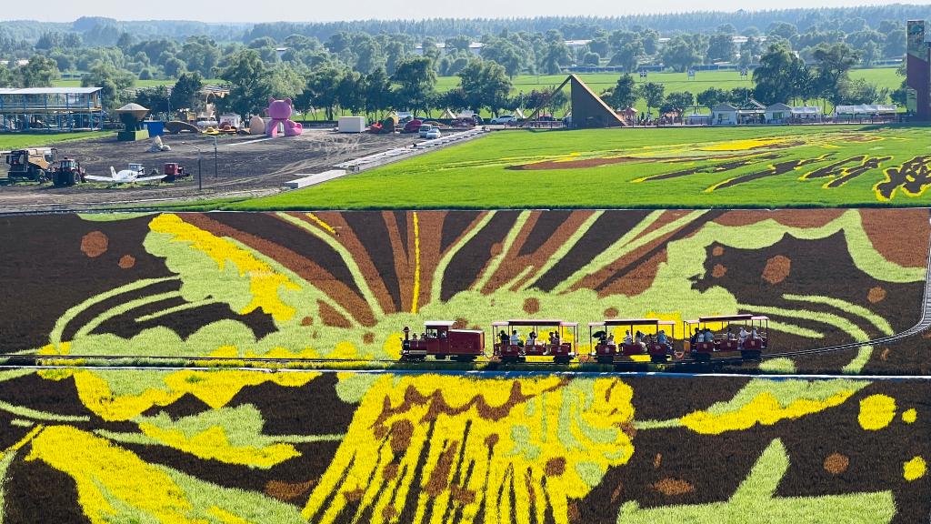 在北大荒集團閆家崗農(nóng)場的“藝術(shù)稻田”里,6幅稻田畫在165畝稻田中徐徐展開——冰雪畫卷盡顯百年冰城魅力,四季生態(tài)畫卷演繹著四季浪漫;萌寵卡皮巴拉,傳遞出平靜與治愈的力量;后羿射日、女媧補天、神筆馬良這些經(jīng)典神話在稻田中煥發(fā)新生,與多彩的稻浪共同演繹著中華文明的永恒魅力。100多公里外,北大荒集團四方山農(nóng)場的玉米田,青紗帳漸染金黃,工作人員張昊正遙控?zé)o人機,巡航監(jiān)測作物成熟度,科技與傳統(tǒng)在此刻共舞。
