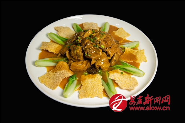 2022年,王鵬注冊成立了寧陜縣關口菜根香餐飲文化有限公司,這不僅是為了傳承陜菜傳統(tǒng)文化的精髓,更是將中國古典文化中的“匠心”與“堅守”融入烹飪之道。在其精湛的廚藝之下,每一道菜都承載著文化與創(chuàng)意。天麻燒乳鴿,鴿肉鮮嫩,天麻咸鮮,是一道難得的養(yǎng)生菜品?!绊懱冒謇蹼u”以玉米鍋巴、板栗土雞為主料烹制而成,鍋巴在口腔里發(fā)出咔咔脆的聲音,就有了形象的“響堂”,每一口都是味蕾的享受,于2016年入選“陜西名菜”。