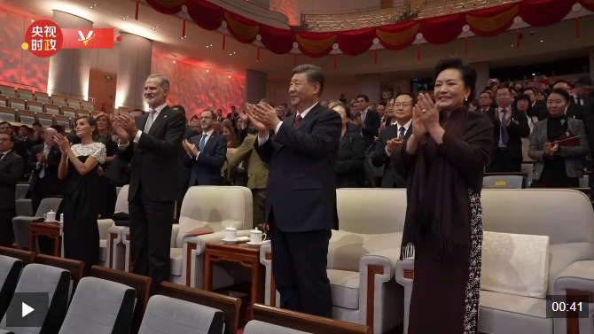 11月12日晚,國家主席習(xí)近平和夫人彭麗媛在北京國家大劇院同西班牙國王費利佩六世夫婦一同觀看西班牙皇家劇院音樂會。