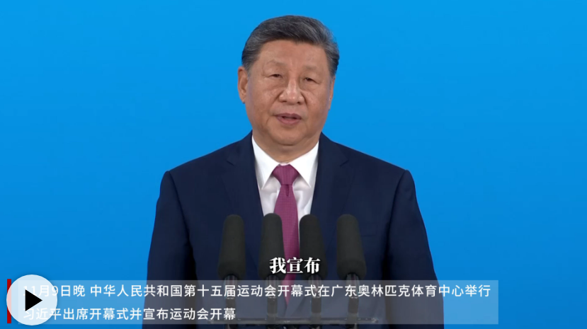 11月9日晚,中華人民共和國第十五屆運動會在廣東省廣州市隆重開幕。中共中央總書記、國家主席、中央軍委主席習近平出席開幕式并宣布運動會開幕。