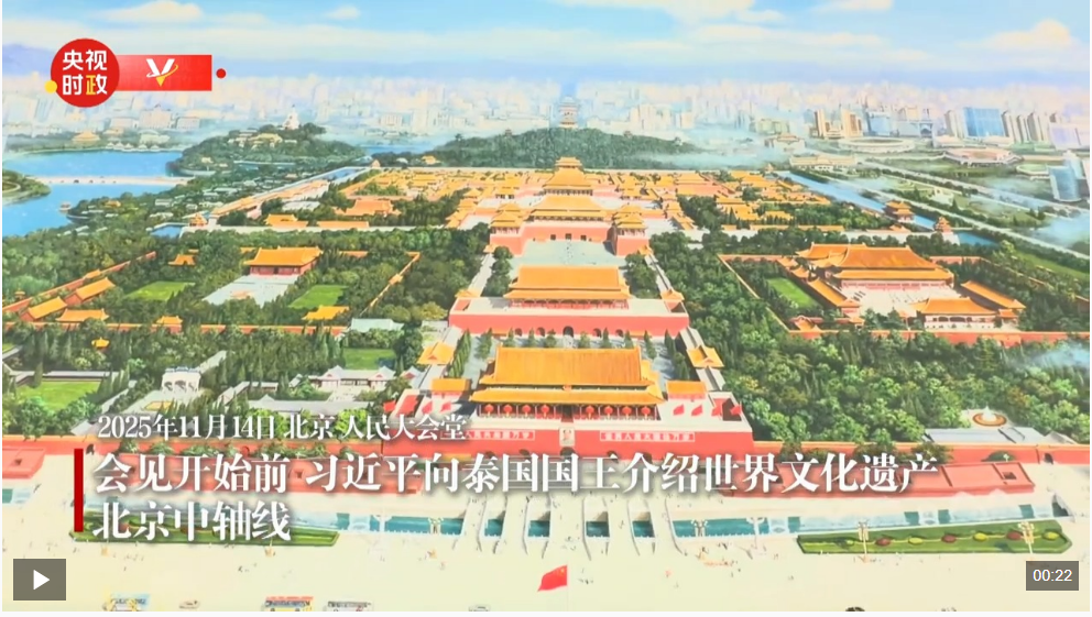 會(huì)見(jiàn)開(kāi)始前,習(xí)近平向泰國(guó)國(guó)王介紹世界文化遺產(chǎn)——北京中軸線。
