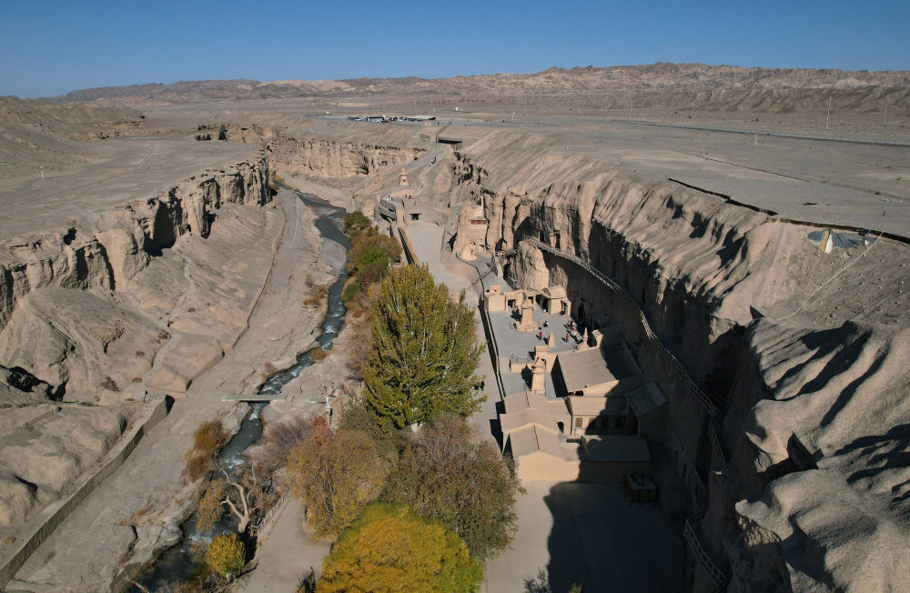 ??位于甘肅瓜州縣的榆林窟(2025年10月31日攝,無人機(jī)照片)。