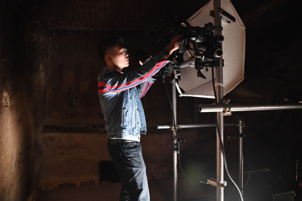 ??2023年4月25日,敦煌研究院文物數(shù)字化保護(hù)團(tuán)隊圖像采集人員熊業(yè)騰在洞窟內(nèi)調(diào)試設(shè)備,準(zhǔn)備采集壁畫圖像。30多年前,敦煌研究院便嘗試以數(shù)字技術(shù)讓古老石窟“芳華永駐”。2016年,“數(shù)字敦煌”資源庫上線,首次向全球免費共享30個敦煌石窟的高清圖像和全景漫游,用戶足不出戶就能欣賞到高清的敦煌文化數(shù)字資源,目前訪問用戶遍布全球78個國家,累計訪問量超過2000萬次。