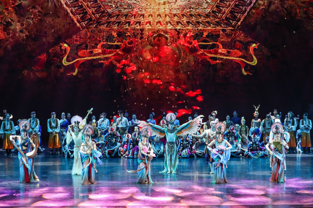 ??2025年9月20日,演員在敦煌大劇院表演新版《絲路花雨》。1979年,大型民族舞劇《絲路花雨》在中國西北誕生。編創(chuàng)者們從敦煌莫高窟的壁畫和彩塑中尋找靈感,將壁畫上凝固了千年的舞姿,轉(zhuǎn)化為動態(tài)舞蹈語言。40多年來,《絲路花雨》累計演出超4000場,足跡遍布40多個國家和地區(qū),被譽為“中國舞劇的里程碑”和“活的敦煌壁畫、美的藝術(shù)享受”。此次新版歷經(jīng)兩年半創(chuàng)排,通過復(fù)原與創(chuàng)新對經(jīng)典藝術(shù)進(jìn)行當(dāng)代詮釋,彰顯了中華優(yōu)秀傳統(tǒng)文化的生命力。