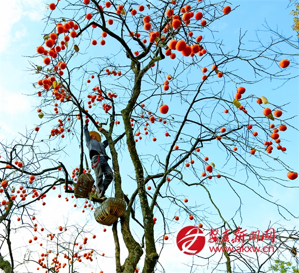 眼下正是柿子成熟的季節(jié),白河縣城關(guān)鎮(zhèn)安福村芍藥花園區(qū)附近漫山遍野的柿子,像一個(gè)個(gè)橘黃色的小燈籠掛滿枝頭。