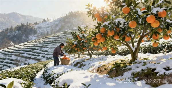 雪落茶山,天地一白。這場(chǎng)突如其來(lái)的冬雪,讓紫陽(yáng)的群山披上了素白的衣裳,也讓山間的金錢桔迎來(lái)了最美的時(shí)光。