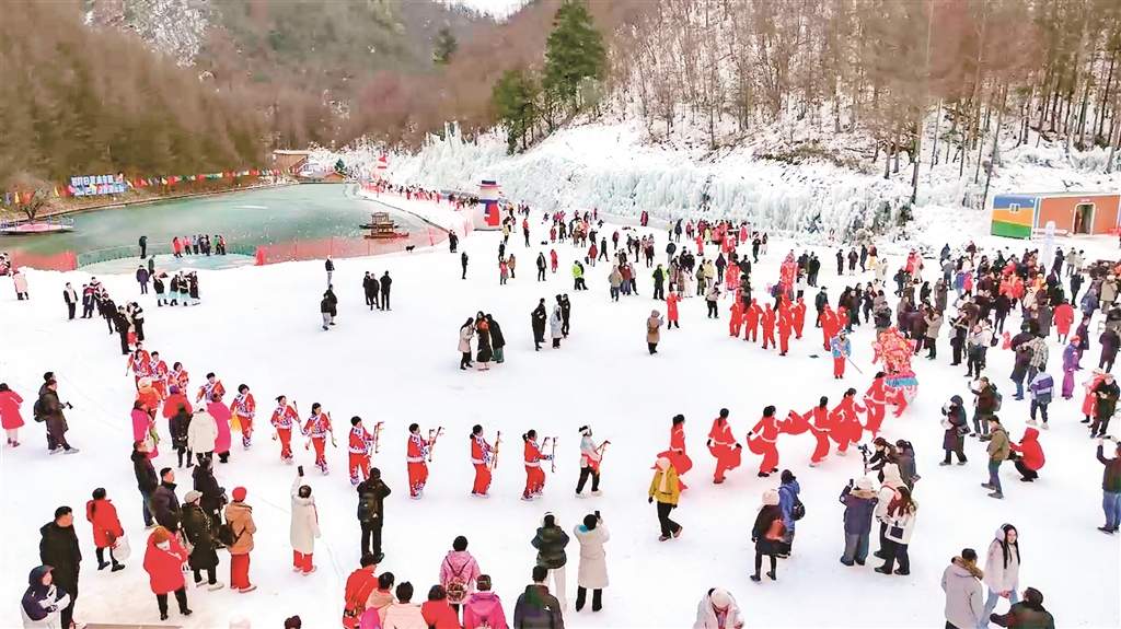 元旦期間,平利縣以“冬賞雪·趣平利”為主題,創(chuàng)新推出冰雪文旅融合系列活動(dòng),打造集觀賞、體驗(yàn)、美食于一體的冰雪樂(lè)園。圖為1月2日,游客在平利縣八仙鎮(zhèn)天書峽景區(qū)游玩。 沈奕君 攝