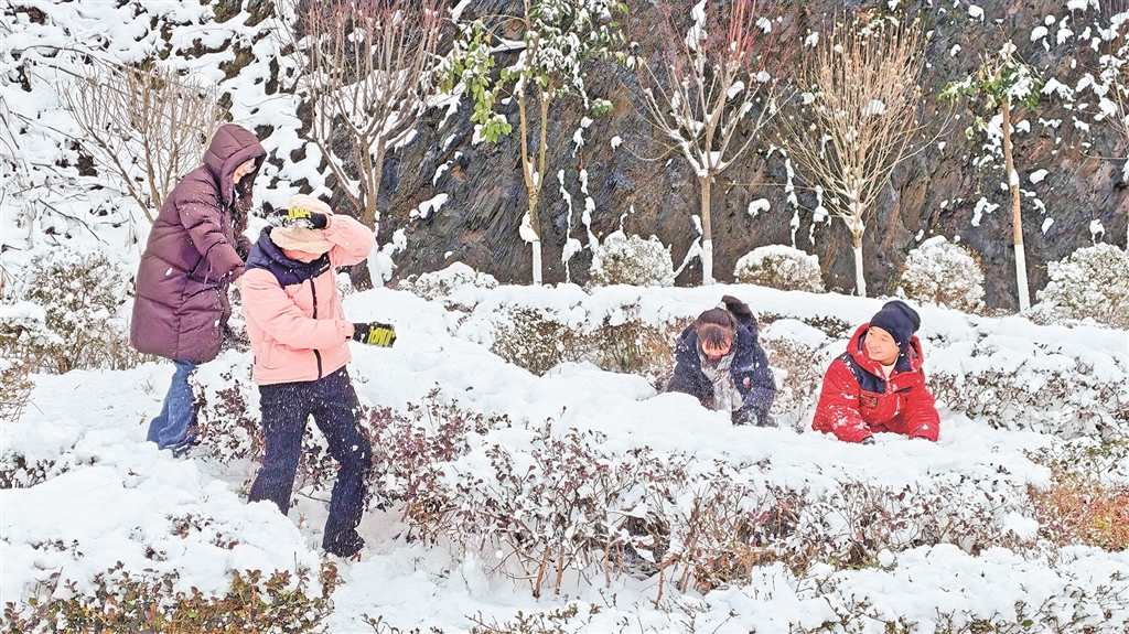 元旦期間,游客來(lái)到紫陽(yáng)縣米溪梁山頂,堆雪人,打雪仗,親近大自然,享受假日的愉悅。 儲(chǔ)茂銀 攝