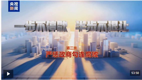 由中央紀(jì)委國(guó)家監(jiān)委宣傳部與中央廣播電視總臺(tái)央視聯(lián)合攝制的電視專(zhuān)題片《一步不停歇 半步不退讓》,1月12日在總臺(tái)央視綜合頻道晚8點(diǎn)檔播出第二集《嚴(yán)懲政商勾連腐敗》,央視新聞新媒體平臺(tái)同步播發(fā)。