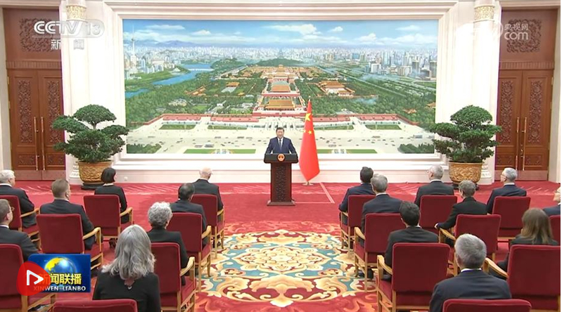 儀式結(jié)束后,習(xí)近平在北京廳對(duì)使節(jié)們發(fā)表講話。