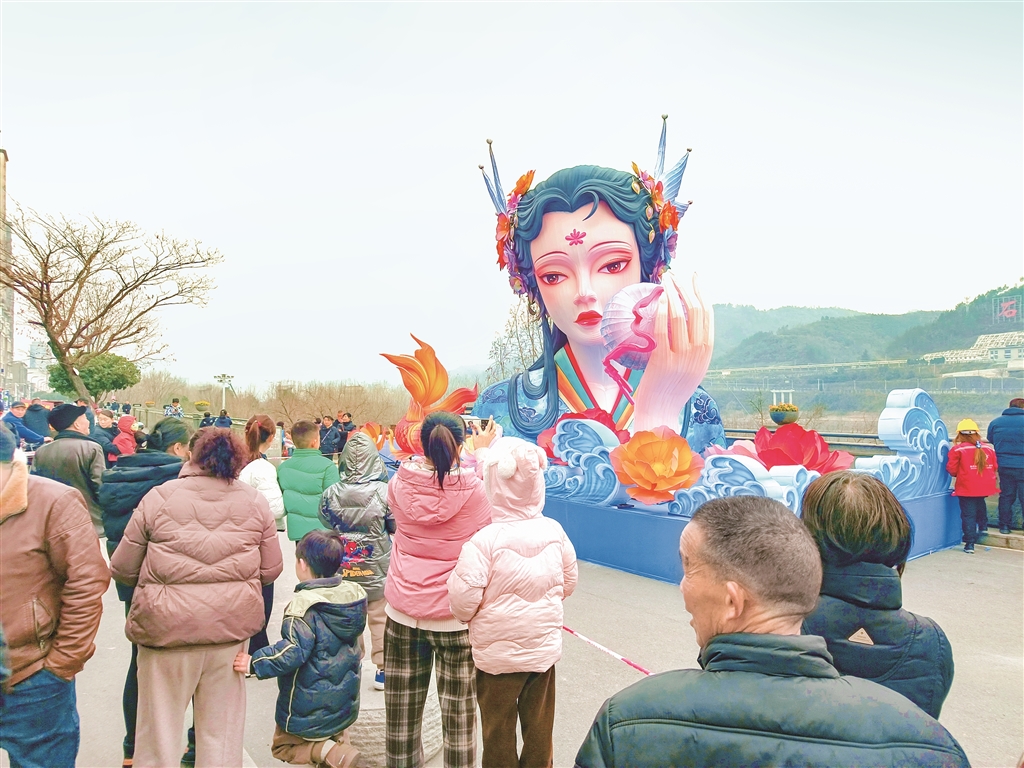 春節(jié)臨近,石泉縣依托獨(dú)特漢水文化、蠶桑文化、移民文化資源稟賦,通過設(shè)置漢江神女、蠶桑娘娘、嫦娥奔月、漢調(diào)二黃等造型獨(dú)特的燈飾,營造濃濃的新年氛圍。圖為1月17日下午,工人正在安裝燈飾。(譚文昌 攝
