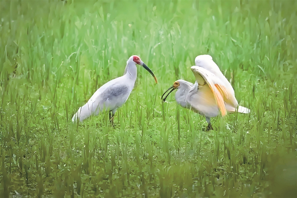 為了守護這些國寶,石泉縣將朱鹮的7處自然棲息地劃定為保護區(qū),聘請巡護員強化日常監(jiān)督,嚴禁追逐、哄趕、驚嚇朱鹮,保護區(qū)內(nèi)嚴禁使用農(nóng)藥化肥。2023年,石泉縣成立了朱鹮保護協(xié)會,開展全域朱鹮種群調(diào)查、法規(guī)宣傳、受傷朱鹮救助等工作,目前已經(jīng)救助了30多只受傷的朱鹮。如今,全縣棲息的朱鹮已達11群181只。