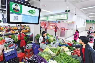 | 安徽省合肥市瑤海區(qū)勝利智能農(nóng)貿(mào)市場,每個攤位都安裝了電子屏,只需掃碼即可實現(xiàn)移動支付,還可在平臺對商家進(jìn)行點評、維權(quán)投訴等。掃碼“滴”聲之后,現(xiàn)實與虛擬被連接,這種黑白方格組成的“時代符號”(二維碼)帶來了便利、快捷和驚喜。 |