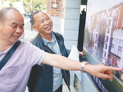 | 融水搬遷戶觀看千戶苗寨效果圖。 |