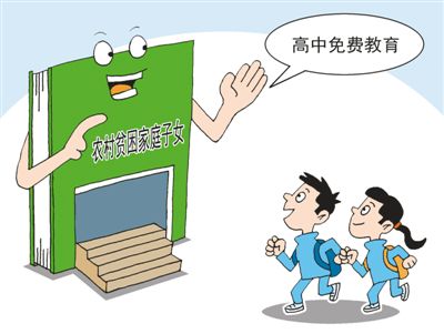 在高中教育包括職業(yè)教育階段,從2012年秋季學期起,國家對所有農村學生、家庭經濟困難學生等群體免除學費,并對連片特困地區(qū)學生實現(xiàn)了100%覆蓋。