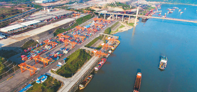 | 圖為航拍的中國(guó)內(nèi)河大港重慶果園港。 |