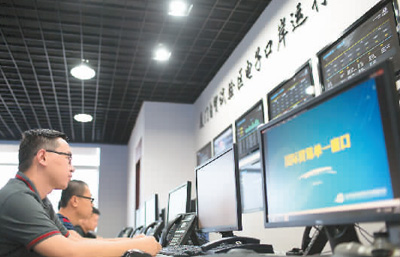 | 圖為工作人員在廈門(mén)自貿(mào)試驗(yàn)區(qū)電子口岸運(yùn)行監(jiān)控中心監(jiān)測(cè)運(yùn)行數(shù)據(jù)。 |