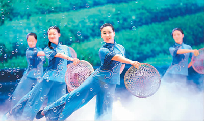 | 采茶女表演采茶。 |