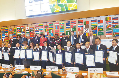 | 第五屆全球重要農(nóng)業(yè)文化遺產(chǎn)國際論壇上獲世界重要文化遺產(chǎn)授牌的各國代表合影。 |