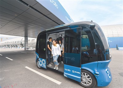 4月21日,中國首款商用級無人駕駛巴士在首屆數(shù)字中國建設(shè)峰會主會場——福州海峽國際會展中心亮相。4月22日至24日峰會舉辦期間,該巴士面向公眾開放試乘體驗。圖為市民在體驗無人駕駛巴士。