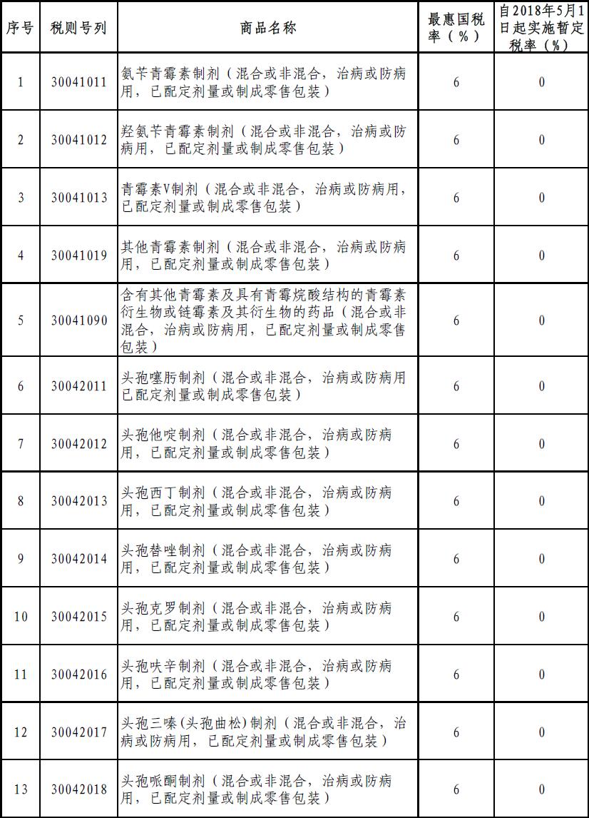 附:進(jìn)口藥品最惠國(guó)暫定稅率調(diào)整表