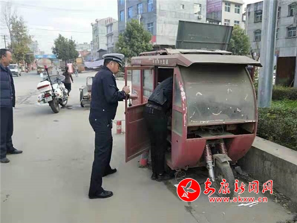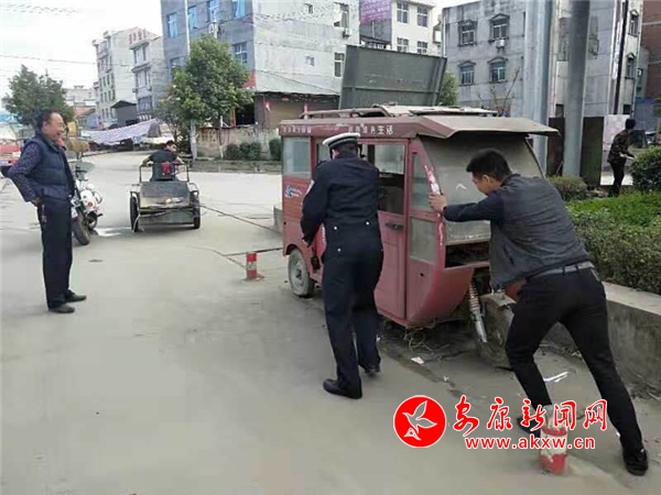張灘中隊在巴山東路棗園段拖移僵尸車