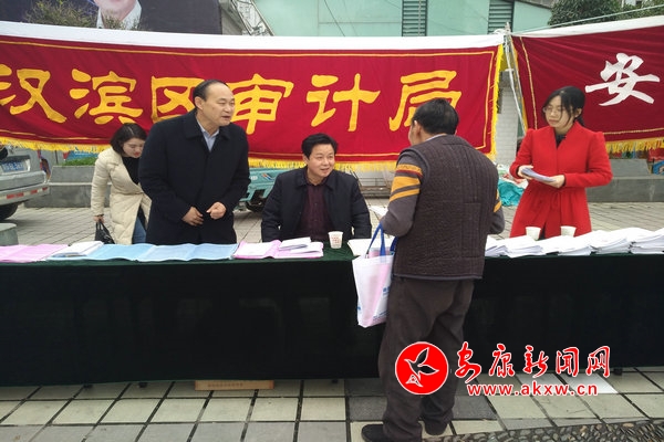 在市中心廣場,市、區(qū)兩級審計工作人員布置活動展板,懸掛宣傳橫幅,搭建宣傳咨詢點。在宣傳活動中,審計人員向過往的群眾發(fā)放《中華人民共和國憲法 (最新版)》《安康市村(社區(qū))主要負(fù)責(zé)人經(jīng)濟(jì)責(zé)任審計暫行辦法》《安康市行政效能審計辦法(試行)》《黨政主要領(lǐng)導(dǎo)干部和國有企事業(yè)人員經(jīng)濟(jì)責(zé)任審計規(guī)定》等法治法規(guī)宣傳讀本。當(dāng)天,共接待咨詢?nèi)罕?00余人次,發(fā)放各種宣傳資料200余份。
