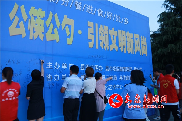 隨后,漢陰縣婦聯(lián)為“文明家庭”“最美家庭”“五好家庭”“美麗家園”示范戶代表贈送公筷公勺,各單位志愿服務隊還在簽名墻簽名承諾,踐行“公筷公勺”行動,引領餐飲新風。