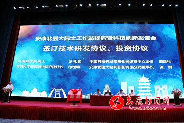 會(huì)上還簽訂了院士技術(shù)研發(fā)合作協(xié)議和投資合作協(xié)議。在隨后的科技創(chuàng)新報(bào)告會(huì)上,北京大學(xué)藥學(xué)院教授劉俊義、北京大學(xué)安康藥物研究院教授徐世明和中國(guó)科技開(kāi)發(fā)院孵化器運(yùn)營(yíng)中心主任顏勝利分別作了學(xué)術(shù)報(bào)告。市直有關(guān)部門(mén)負(fù)責(zé)同志、安康北醫(yī)大合作企業(yè)代表以及安康學(xué)院師生代表等300余人現(xiàn)場(chǎng)聆聽(tīng)學(xué)習(xí)。