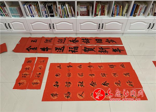 本網訊(通訊員 宮再朋 張艷)1月27日,在紫荊鎮(zhèn)各村文化活動室里,來自各村的書法愛好者們揮毫潑墨,為村民們義寫春聯(lián)。一副副飄著墨香,飽含著濃濃年味、美好祝福的春聯(lián)相繼出爐,行書、楷書、隸書等多種字體各顯神韻,不一會就鋪滿了地面。