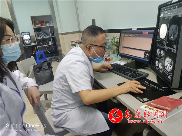 圖為吳保副主任醫(yī)師正在閱讀研判圖片