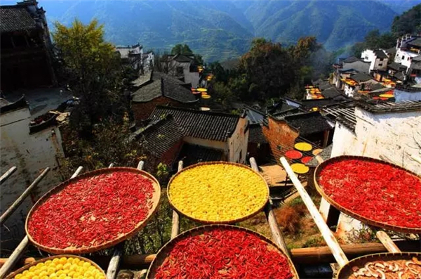 在湖南、江西、安徽等山區(qū),有“曬秋”習俗。因為平地少,農(nóng)民便利用自家窗臺、房頂架曬或掛曬農(nóng)作物。“曬秋”的秋不僅指秋天,更寓意著豐收和收獲的果實。