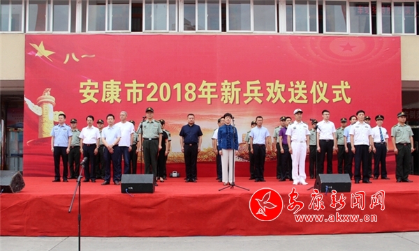 安康新聞網(wǎng)訊(實(shí)習(xí)記者 黃慧慧)9月10日,我市舉行2018年新兵歡送大會(huì),市委常委、常務(wù)副市長趙璟,市委常委、安康軍分區(qū)政委金全斌,安康軍分區(qū)司令員李全國出席歡送會(huì)。